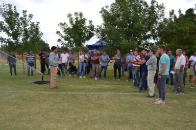 La capacitación incluyó las disertaciones en la sede de la Municipalidad durante la mañana y el trabajo en el estadio «José Gago» por la tarde, para mostrar el estado del campo de juego y las distintas maquinarias que se utilizan para el tratamiento del suelo en los clubes más importantes del país y a nivel internacional.