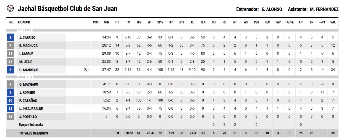 La figura del partido fue sin lugar a dudas el base local Manrique que manejo los hilos del partido y convirtió 32 pts en su haber personal.
